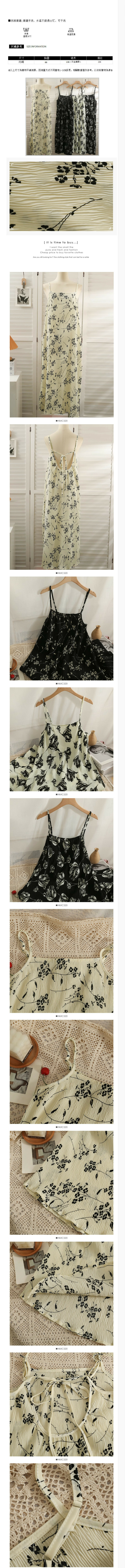 熱賣印花褶皺露背繫帶連衣裙(2#杏色小花)(均碼)