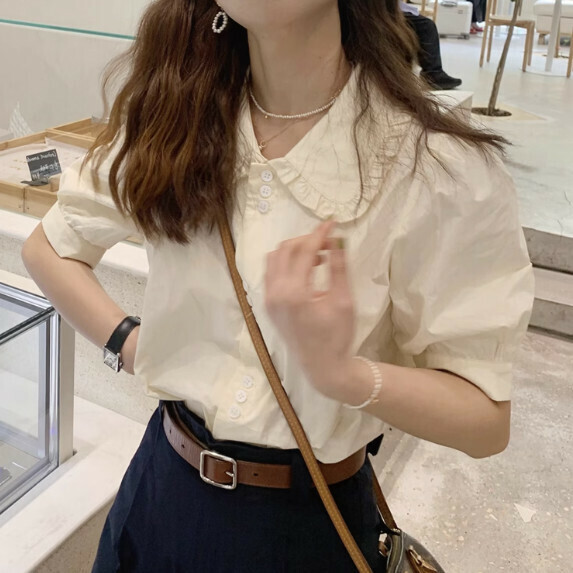熱賣泡泡袖襯衫短袖女夏季(奶黃色【S_XL碼】(下單後聯繫客服確認發貨尺碼)】