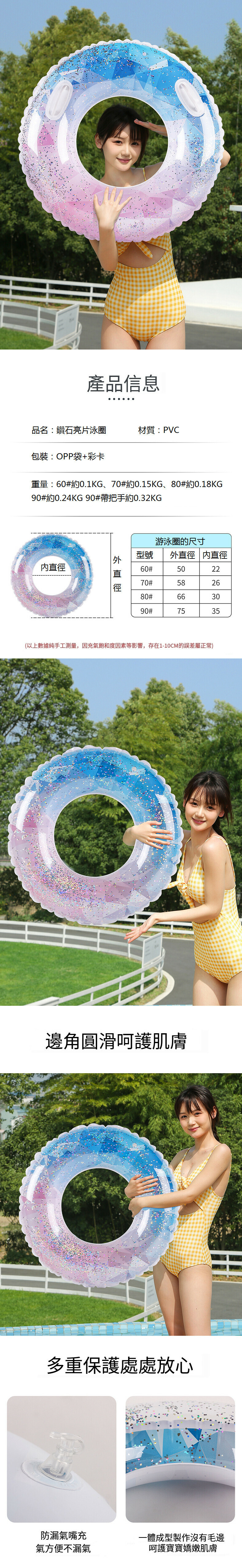 激抵PVC鑽石亮片泳圈【90#帶把手】