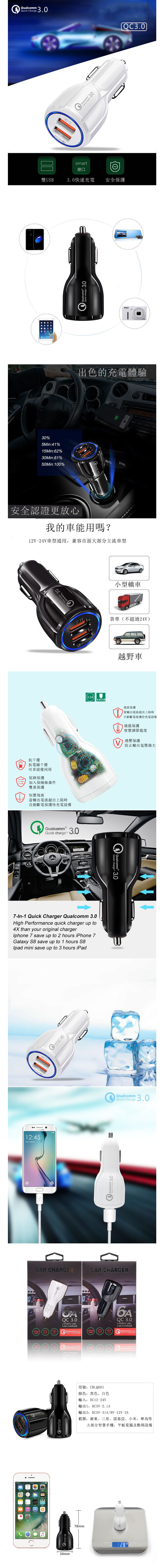熱賣QC3.0快充車載充電器汽車保齡球雙USB車充6A光環多功能車載充電頭(QC3.0 快充-裸機+透明薄膜袋)