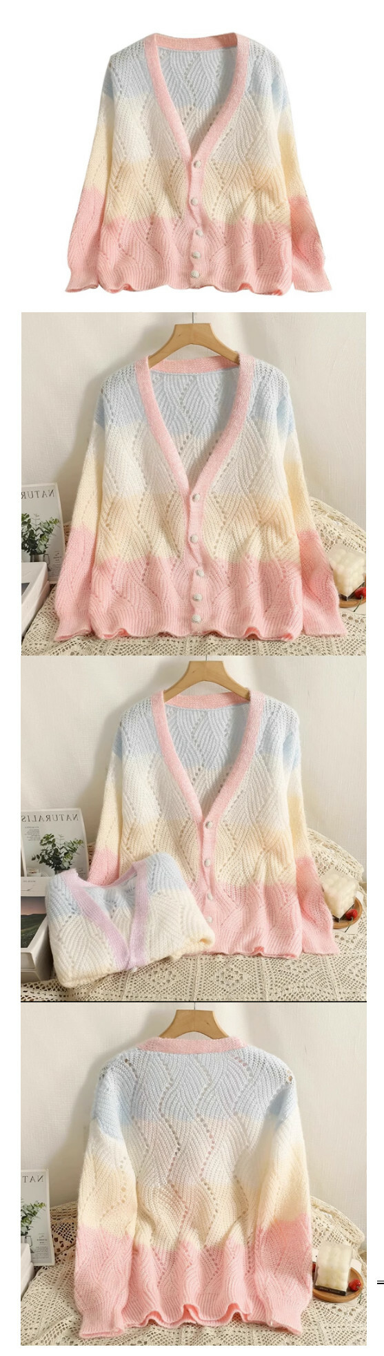 彩虹條紋毛衣開衫外套