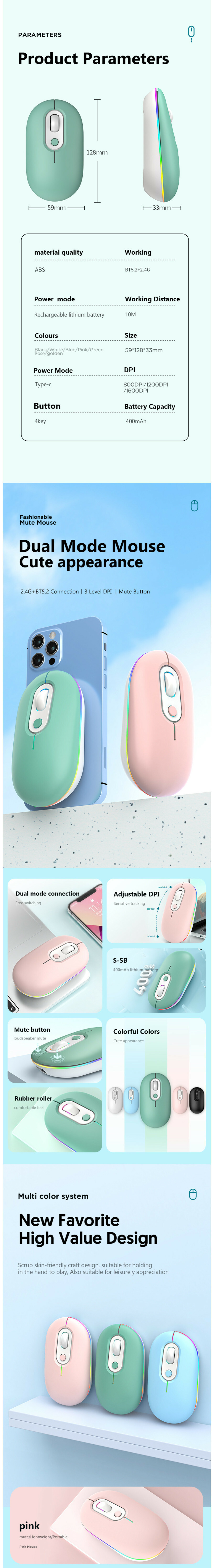 新款充電靜音藍牙雙模無線滑鼠(充電雙模發光粉)