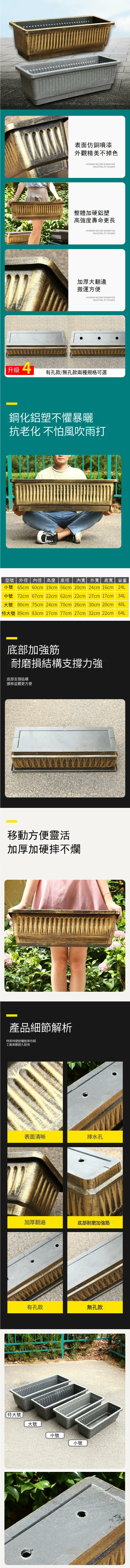 新款長方形塑膠加厚種菜花盆【古銅金大號(長80*高24CM)帶托盤 底部有孔】