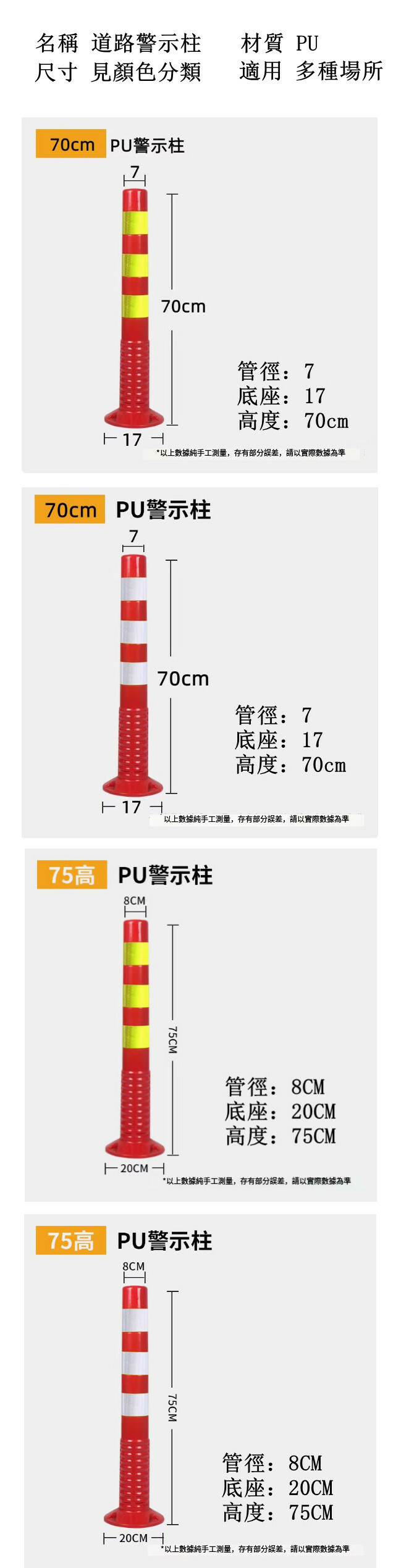 反光PU警示柱--護欄防撞柱 交通設施隔離樁【70cm白膜+螺絲】1件
