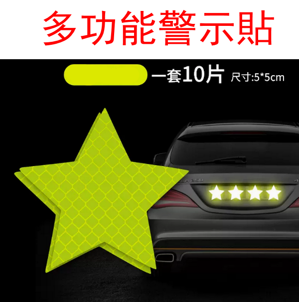熱推車用反光貼安全警示貼-【5*5cm】五星形(熒光黃綠)-強烈反光【10片】