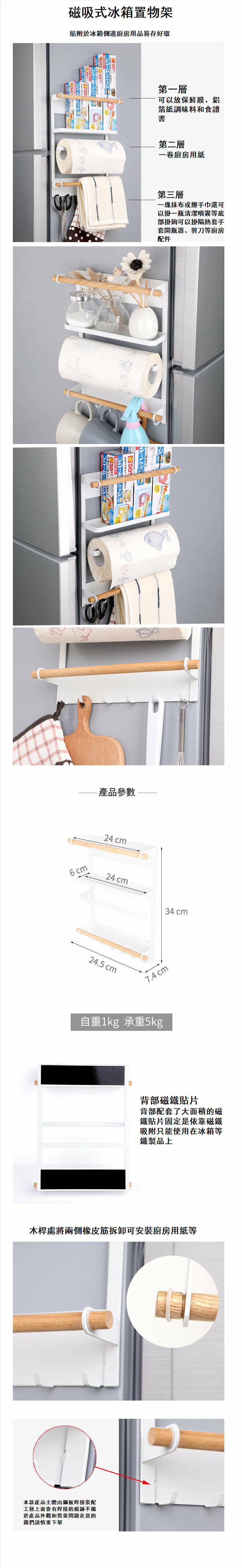 爆款雪櫃磁力置物架帶掛鉤,手紙架、調味架收納架 多功能收納架 磁吸式廚房置物架【白色】