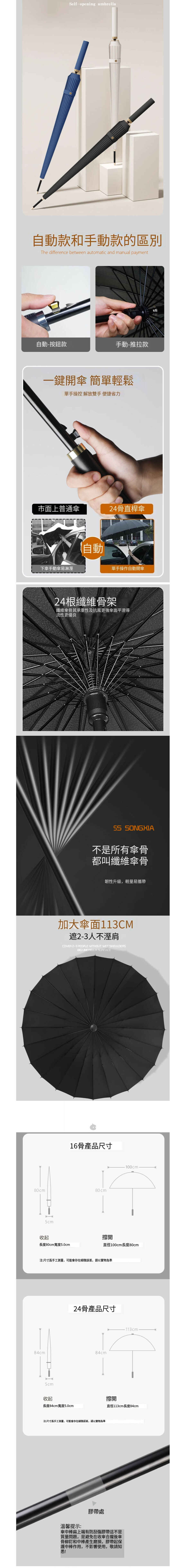 加固結實抗風暴長柄雨傘大號(砂岩黑-24骨自動款【纖維風傘架+直徑125CM】)