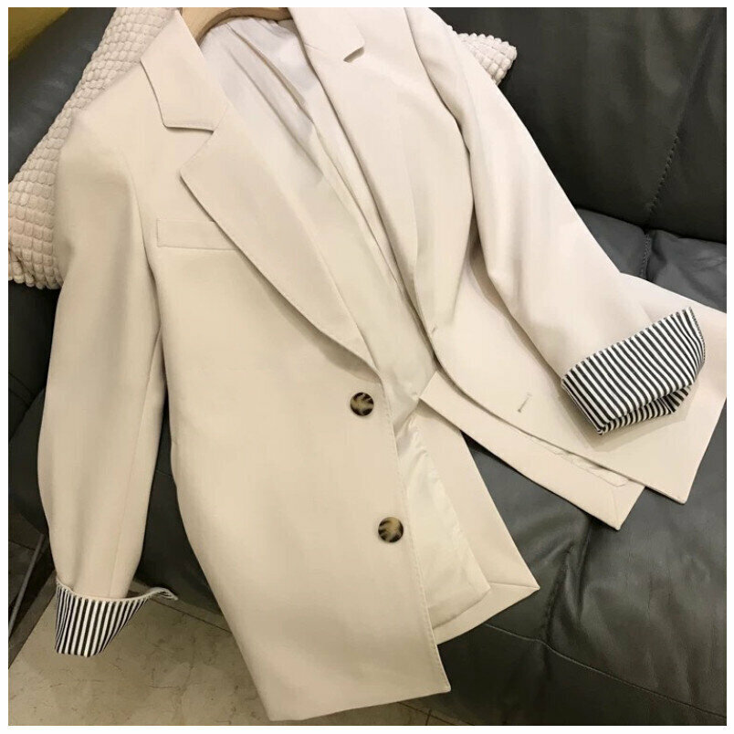 激抵寬鬆休閒西裝外套(米色)(L碼)