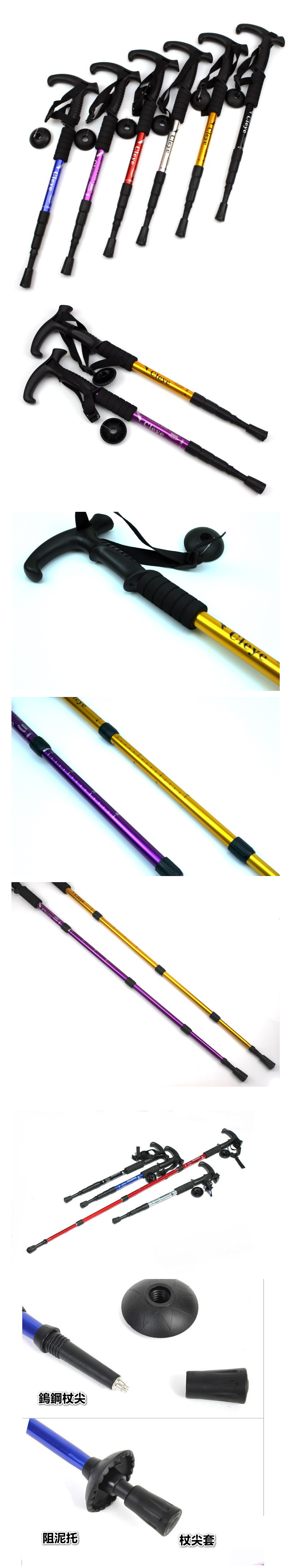 爆款可伸縮式4節鋁合金行山杖〡T柄登山杖【紫色短51CM 長110CM】