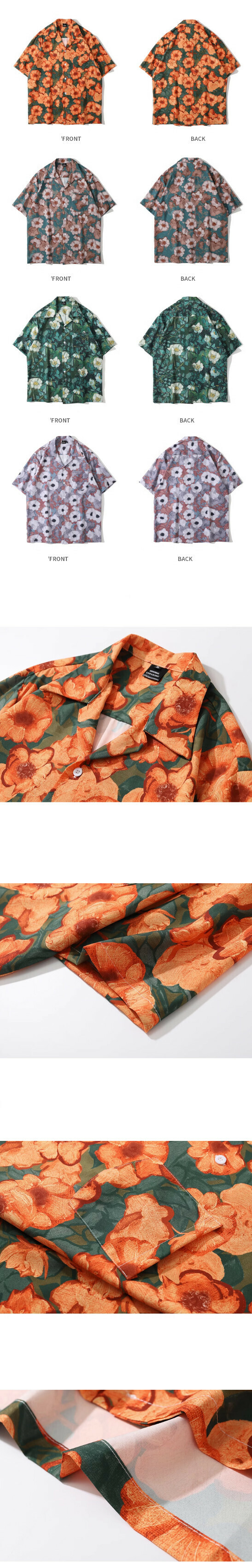 爆款復古抽象油畫滿印短袖襯衫(灰色)【M-2XL碼】【下單後聯絡客服確認發貨尺碼】