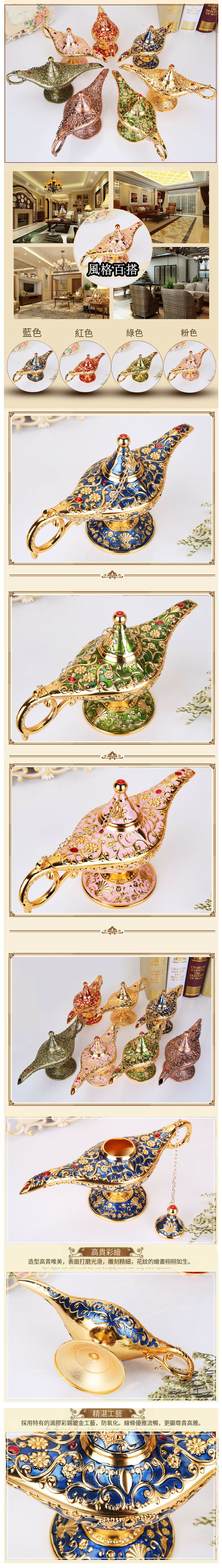 復古阿拉丁神燈擺件--歐式合金許願燈裝飾【綠色 22*12cm】1件