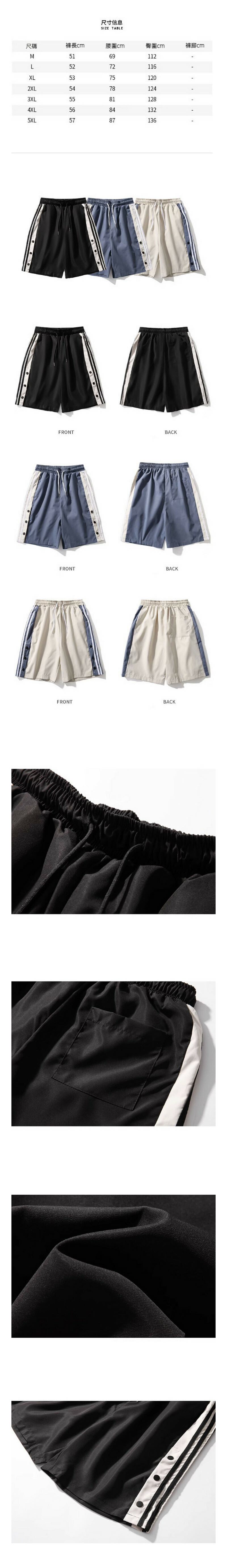 激抵復古拼色休閒五分中褲(藍色)【M-5XL碼】【下單後聯絡客服確認發貨尺碼】