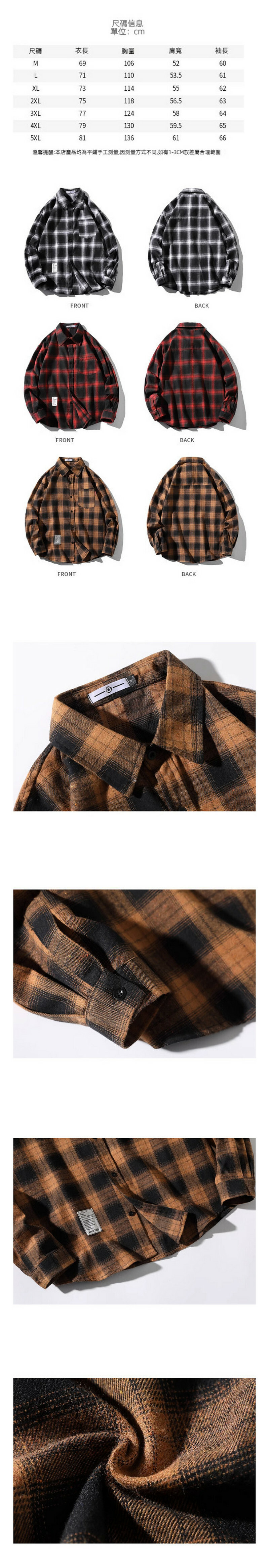 爆款複古格子長袖襯衫(黑黃格)【M-5XL碼】【下單後聯絡客服確認發貨尺碼】