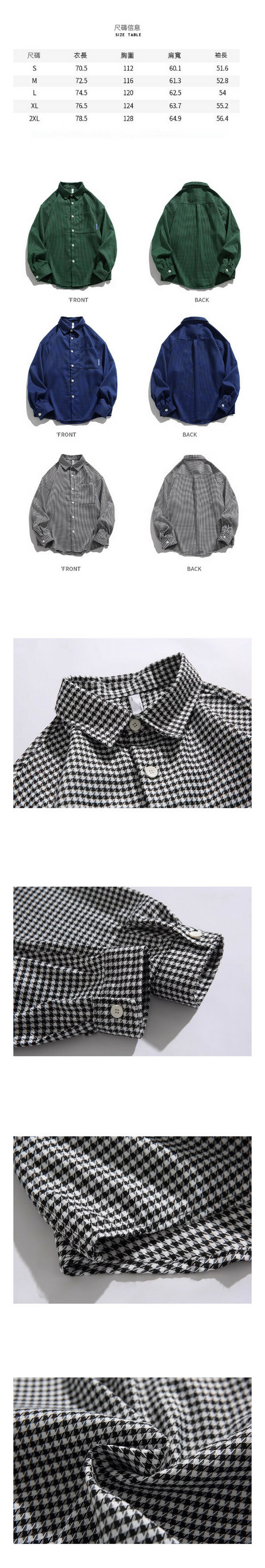 熱推復古格子長袖襯衫(藍色)【S-2XL碼】【下單後聯絡客服確認發貨尺碼】