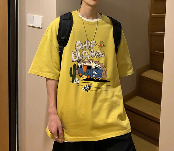 激抵復古短袖T恤男夏季(黃色【S_5XL碼】(下單後聯繫客服確認發貨尺碼)