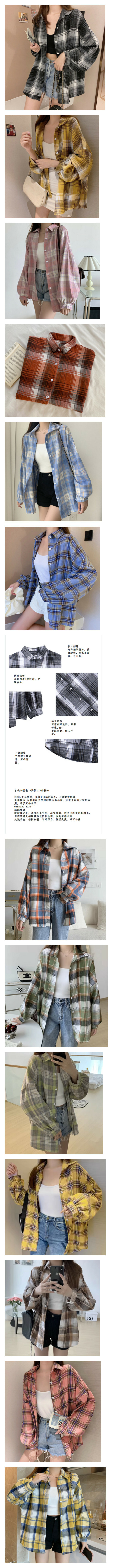 新款復古百搭寬松格子襯衫(藍色白格子)( 尺碼:均碼)