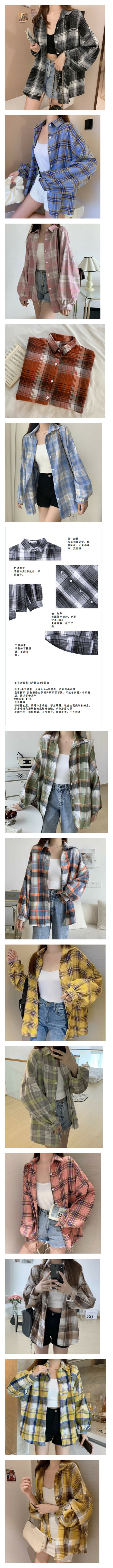 新款復古百搭寬松格子襯衫(黑色大格子 )(尺碼:均碼)