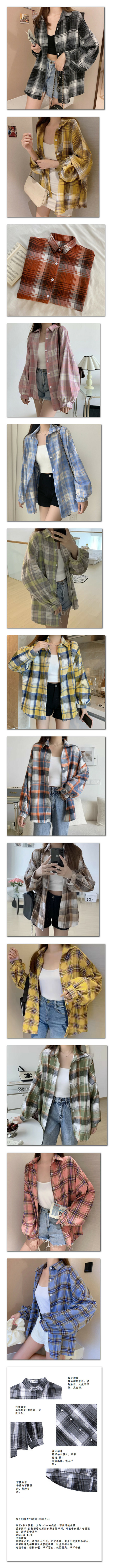 爆款復古百搭寬松格子襯衫(粉色細格子)( 尺碼:均碼)