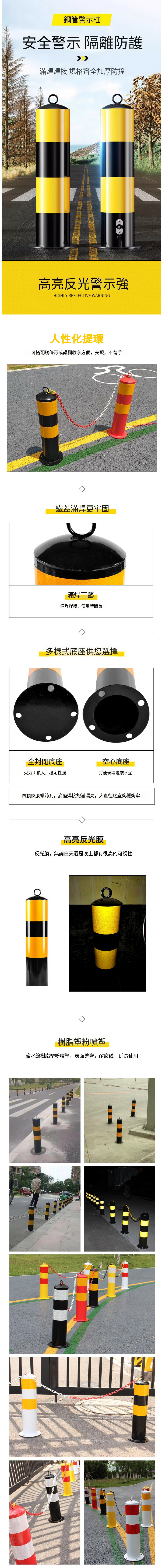 反光鋼管警示柱--停車場防撞柱-固定樁地樁【76*750*1.5 無環固定款】1件