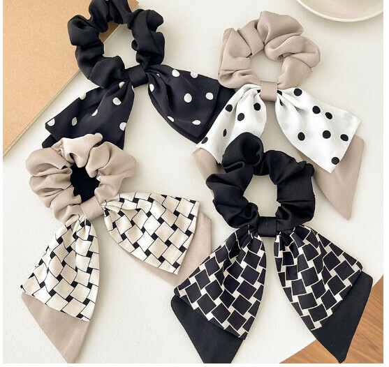 熱賣蝴蝶結飄帶發繩頭繩綁發皮筋(2#黑色波點)