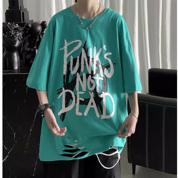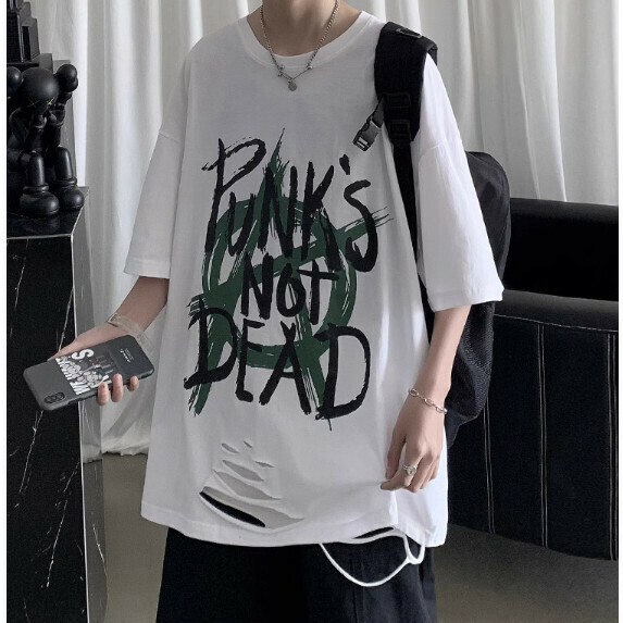 熱推破洞字母短袖T恤男夏季(黑色【S_4XL碼】(下單後聯繫客服確認發貨尺碼)