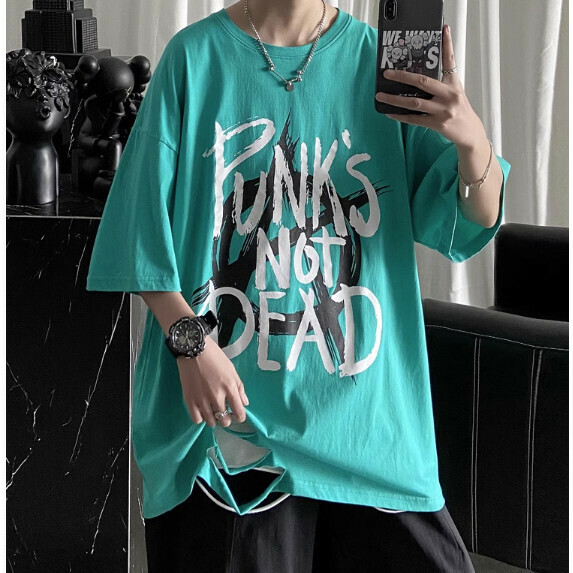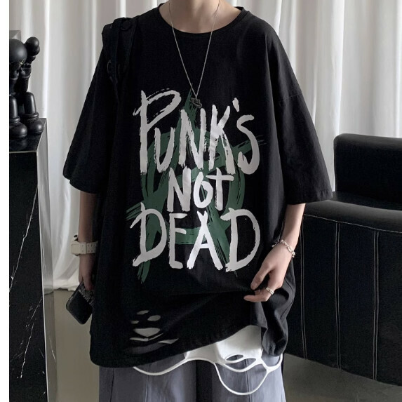 熱推破洞字母短袖T恤男夏季(墨綠色【S_4XL碼】(下單後聯繫客服確認發貨尺碼)