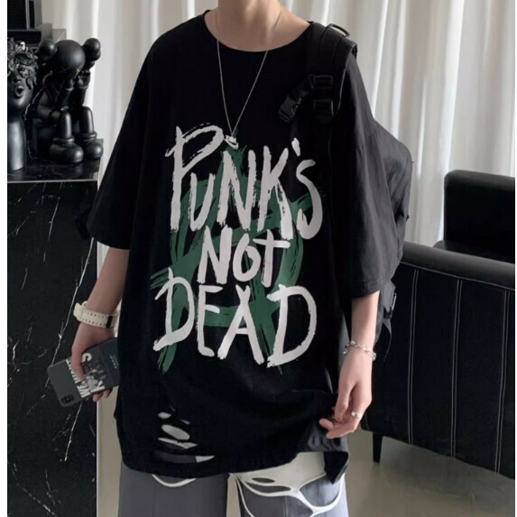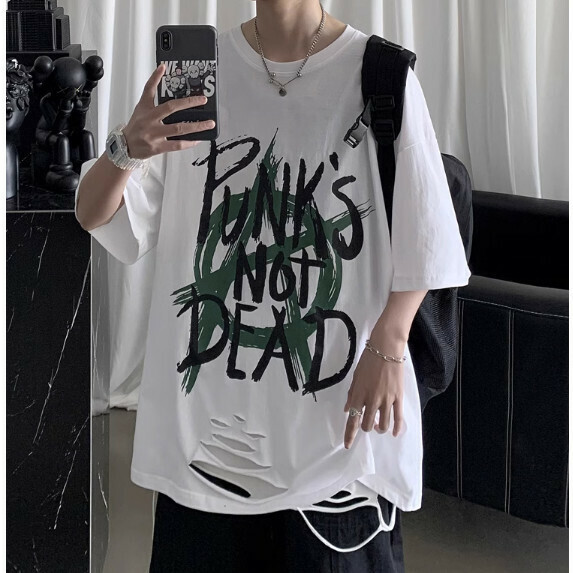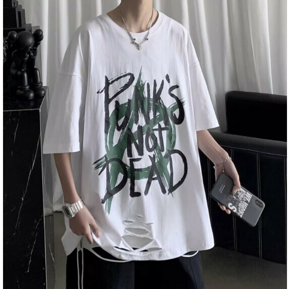 熱推破洞字母短袖T恤男夏季(白色【S_4XL碼】(下單後聯繫客服確認發貨尺碼)