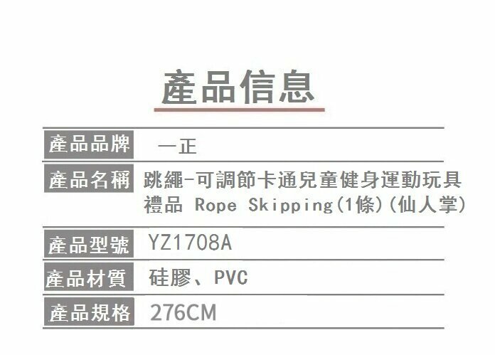 激抵跳繩-可調節卡通兒童健身運動玩具禮品 Rope Skipping(1條)(仙人掌)