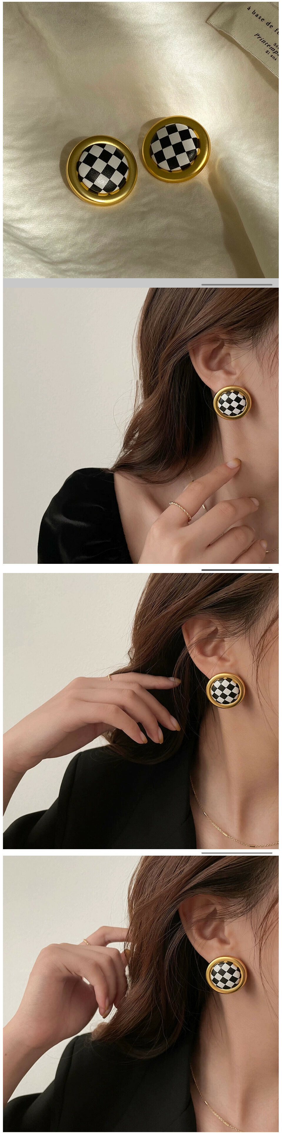 新款圓形紐扣棋盤格耳環(棋盤圓形)