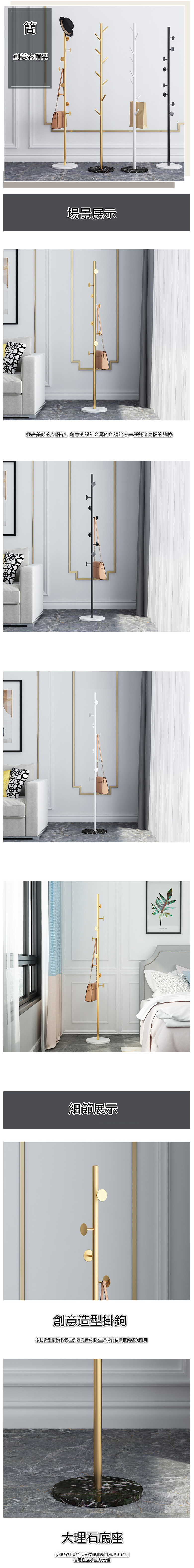 熱賣圓形大理石底座鐵藝衣帽架 - 圓餅款 白支架+白底座