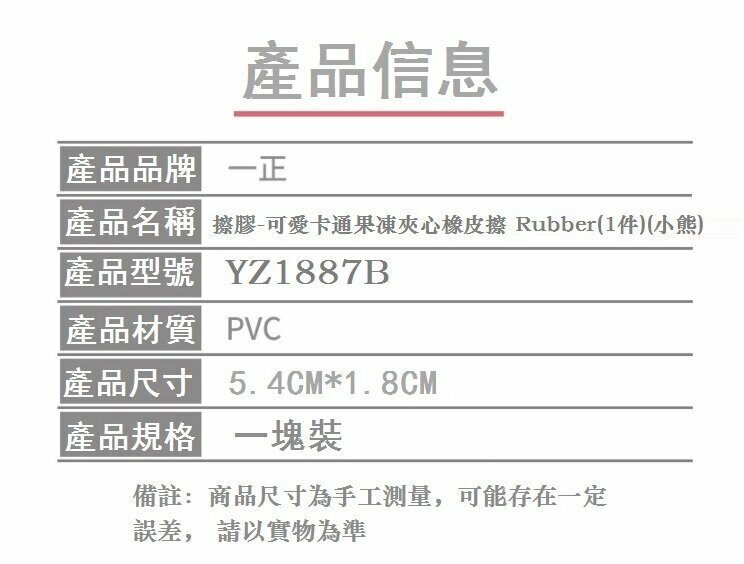 激抵擦膠-可愛卡通果凍夾心橡皮擦 Rubber(1件)(小熊)