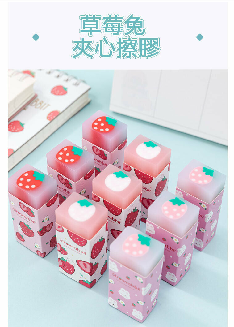 熱賣擦膠-可愛卡通果凍夾心橡皮擦 Rubber(1件)(草莓-白色)