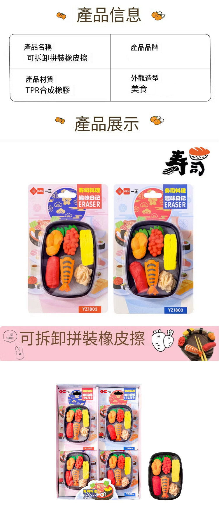 激抵擦膠-趣味壽司料理橡皮擦Rubber(1卡)(卡紙顔色隨機)