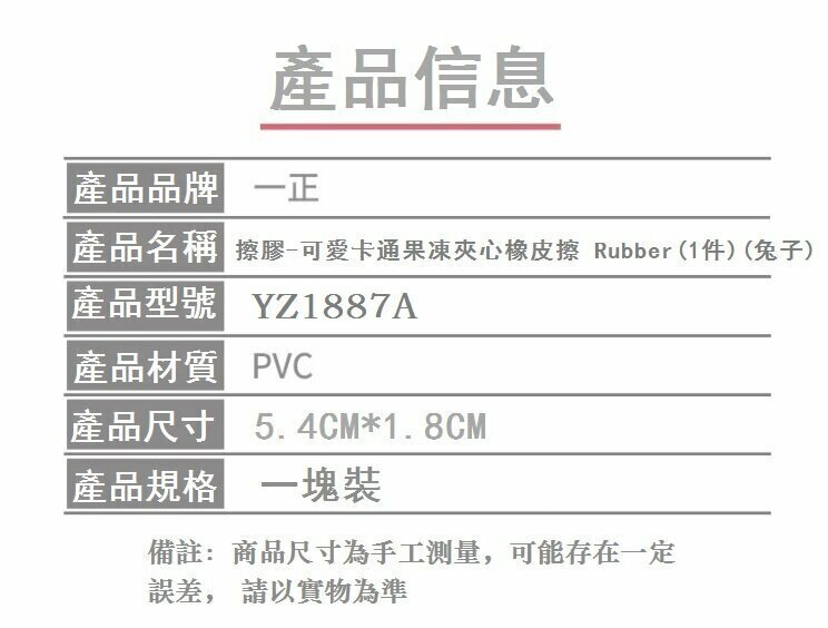 激抵擦膠-可愛卡通果凍夾心橡皮擦 Rubber(1件)(兔子)