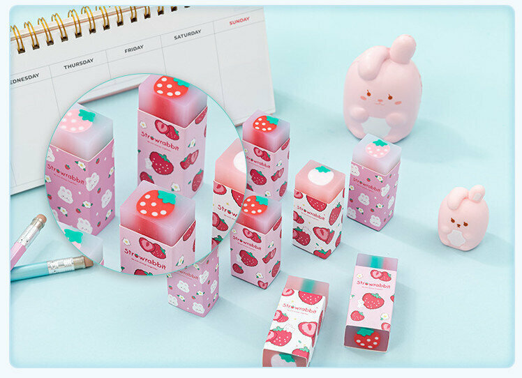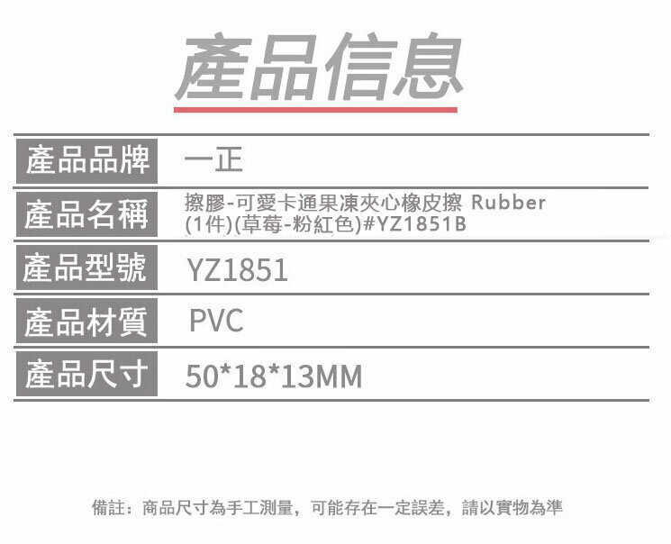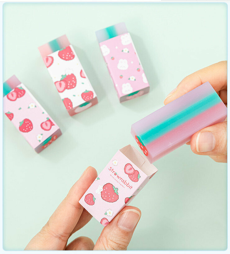 熱賣擦膠-可愛卡通果凍夾心橡皮擦 Rubber(1件)(草莓-粉紅色)