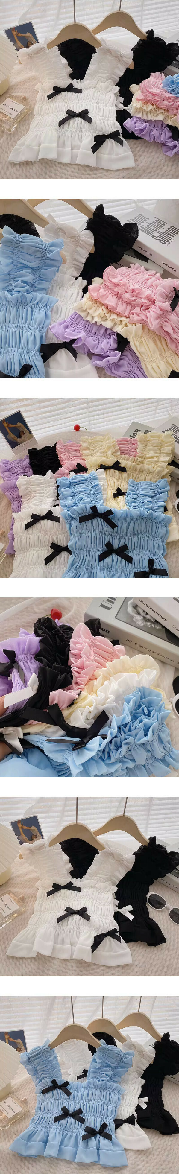激抵皺褶蝴蝶結方領無袖背心(藍色)【均碼】