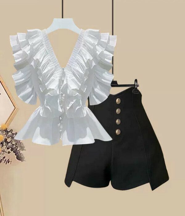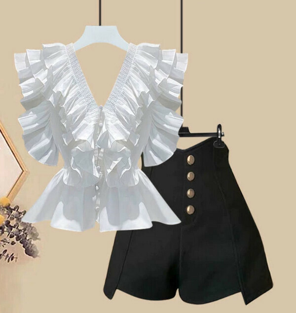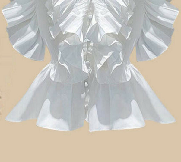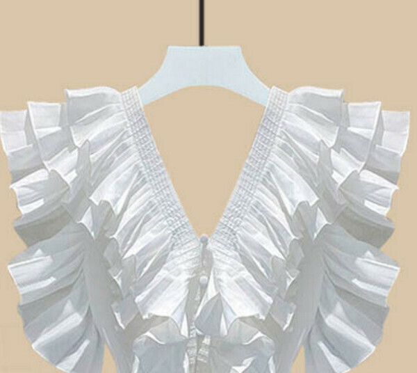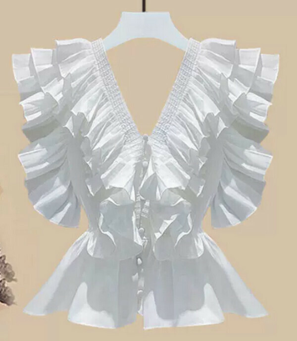 激抵荷葉邊v領上衣#單件(白色)(M-4XL碼) (下單後聯系客服確認尺碼)