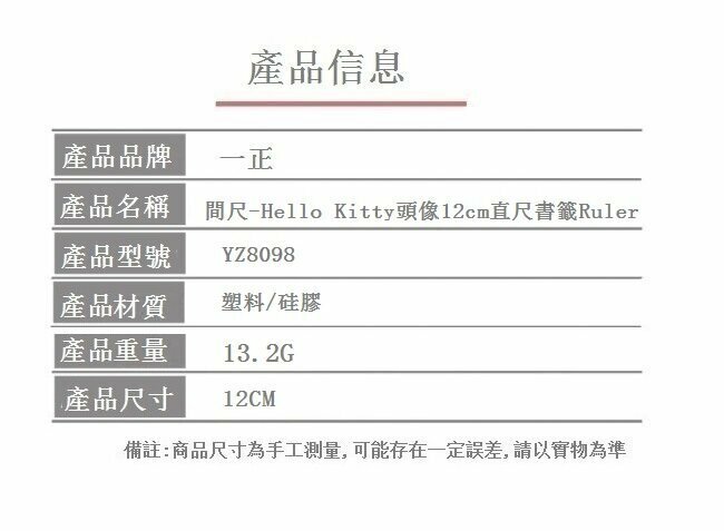 爆款間尺-Hello Kitty頭像12cm直尺書籤Ruler(1件)(藍色)
