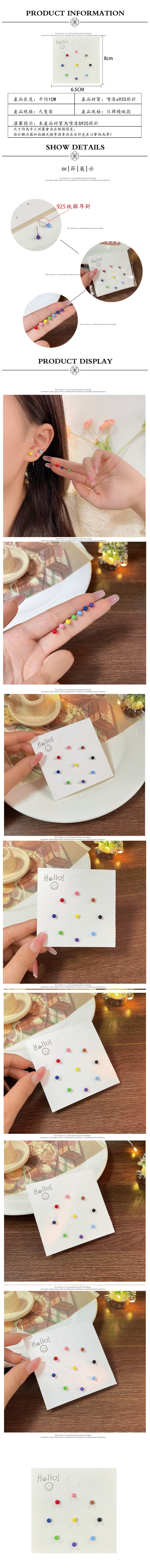 爆款S925銀針糖果色豆豆耳釘套裝 (DOU1 九色豆豆【磨砂】)