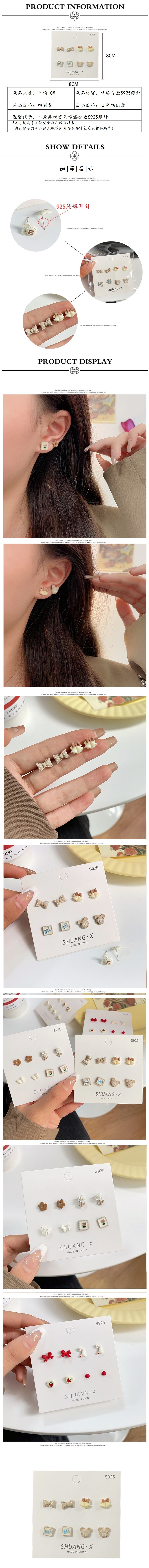 爆款S925銀針趣味卡通耳釘四件套 耳飾(TY4 白色兔子)