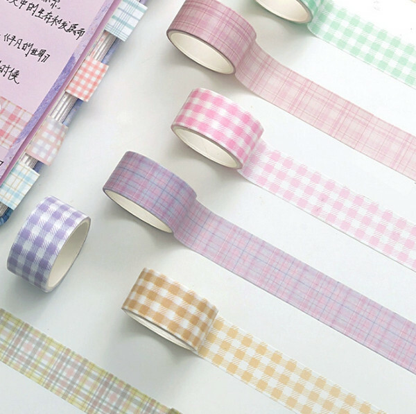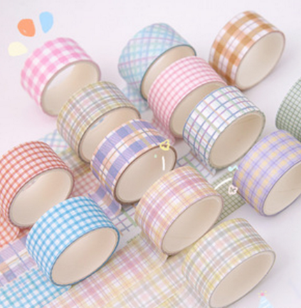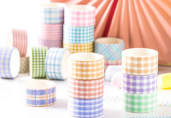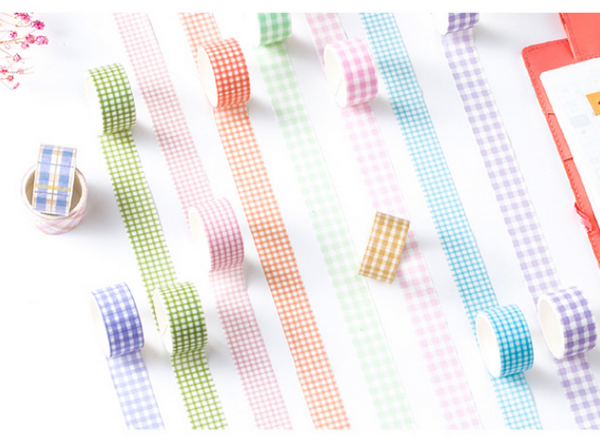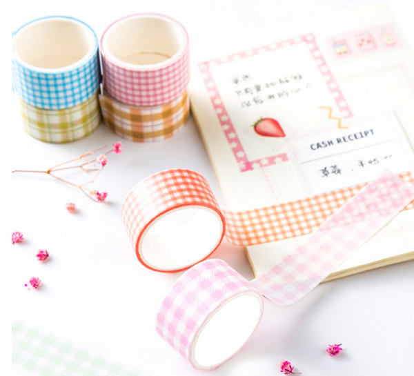 熱推鹽系格子手賬膠帶貼紙-木槿少女(1盒4卷)