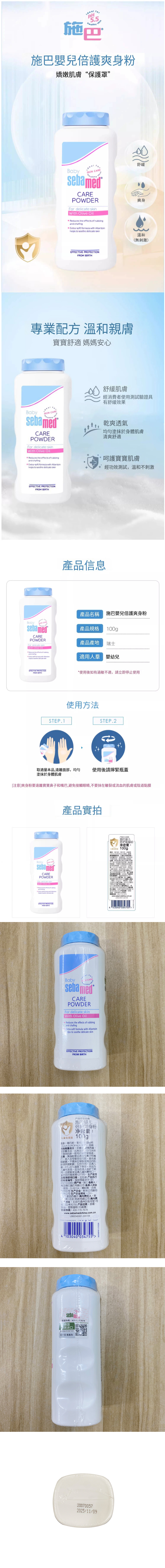 【特價品】Sebamed施巴嬰兒倍護爽身粉 乾爽肌膚痱子粉(100g)(產品有效期:2025/11/09)