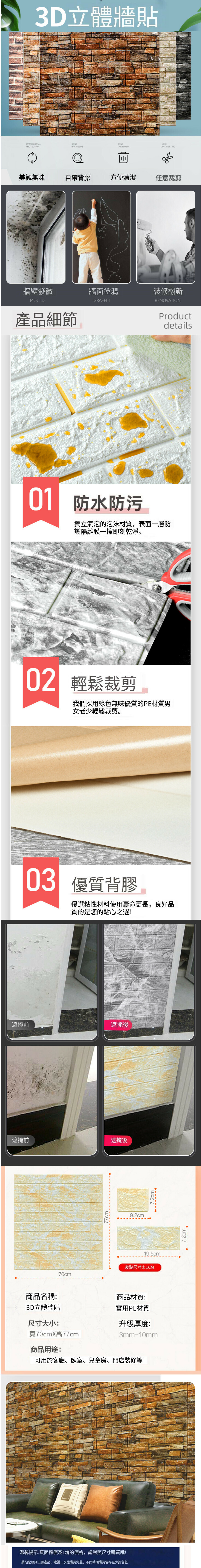 熱賣自粘立體牆貼裝飾牆紙 (#807 5mm70*77cm)