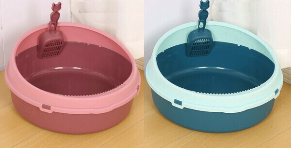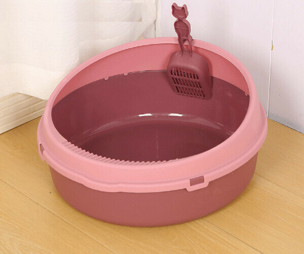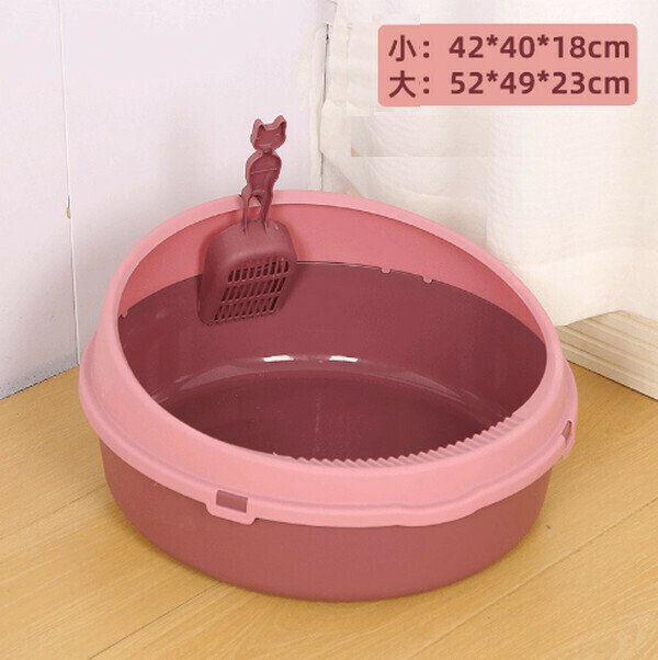 新款半封閉貓砂盆【小號】圓形拼色:粉+玫紅