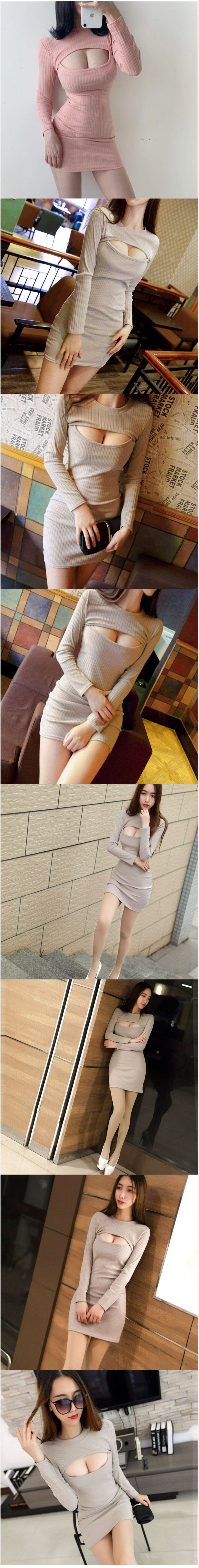 性感辣妹粉色鏤空包臀連衣裙女修身顯瘦裙子
