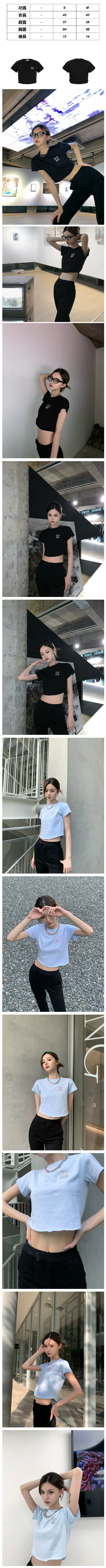 爆款短款字母燙水鑽T恤(藍色-尺碼 S-M碼(下單後聯絡客服確認發貨尺碼))