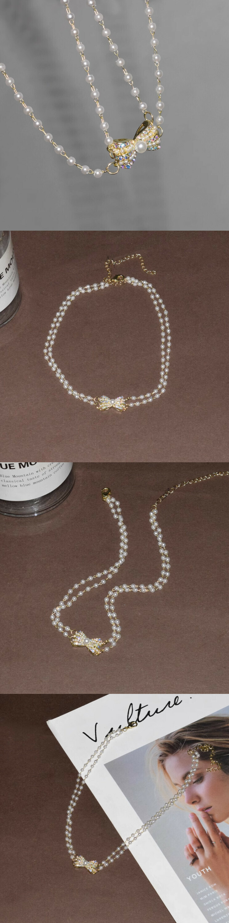 短款蝴蝶結珍珠頸鏈