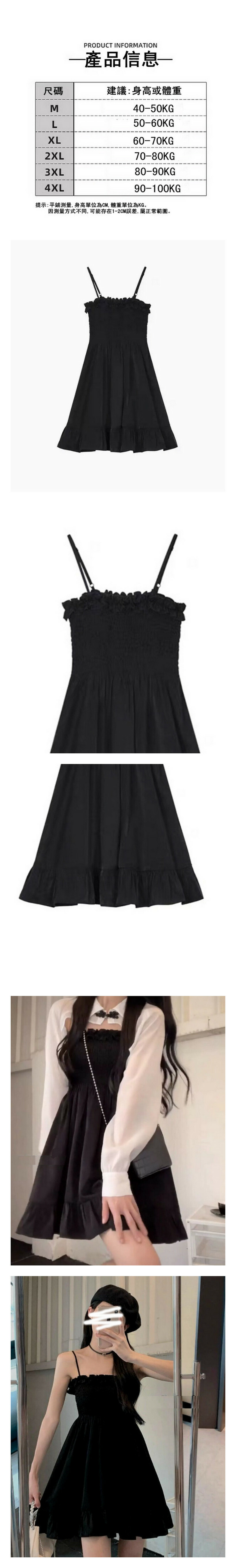 熱推短款胖mm連衣吊帶裙#單件(黑色)(M-4XL碼) (下單後聯系客服確認尺碼)
