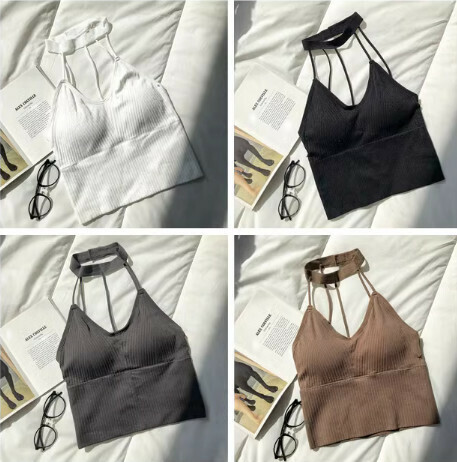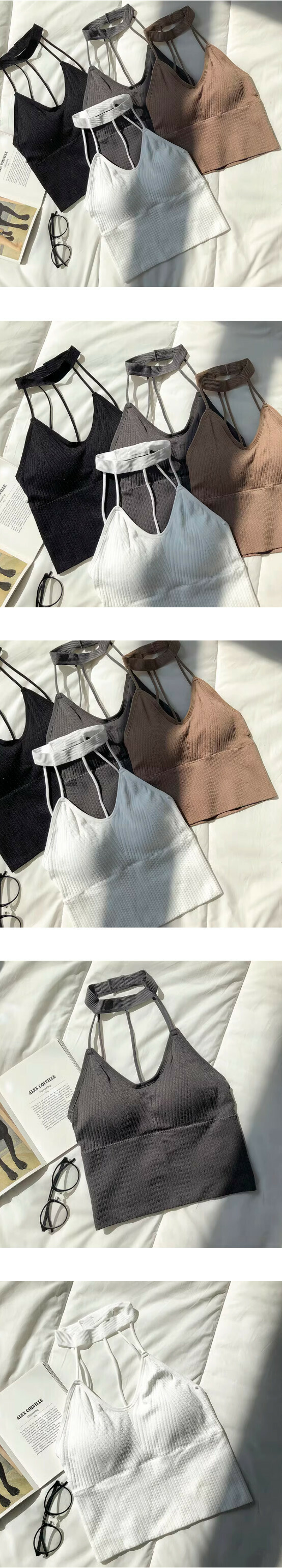 熱賣帶胸墊美背防走光短款掛脖背心(黑色)【均碼】