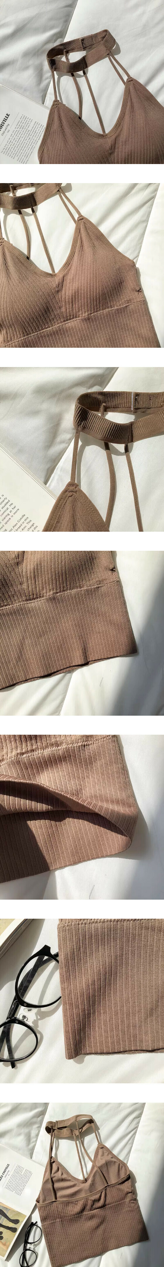 熱賣帶胸墊美背防走光短款掛脖背心(深灰色)【均碼】